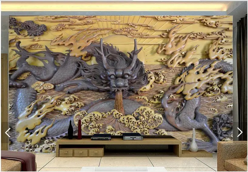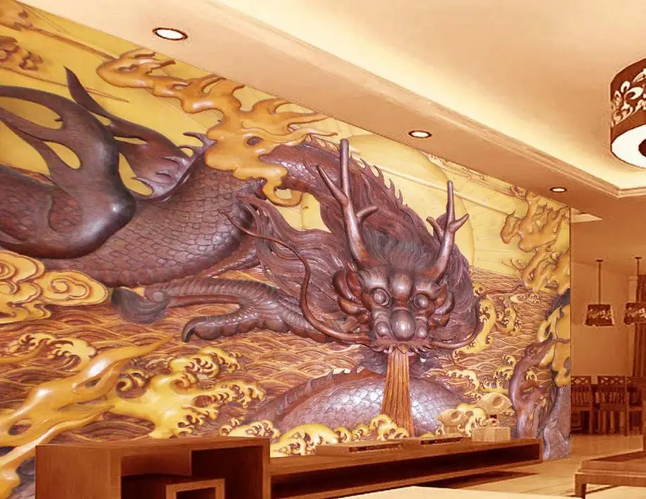 Custom Wallpaper Wood Carving Dragon Photo Wallpaper | Dragon Wallpaper Mural